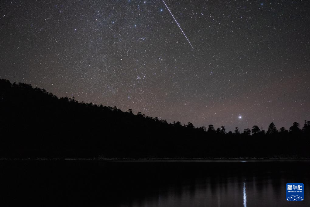 12月14日,在四川省甘洛縣牛角海,一顆雙子座流星劃過夜空。