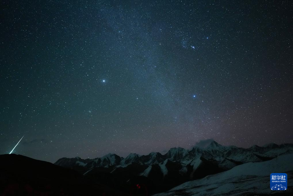 12月12日,在四川省康定市甲根壩鎮(zhèn)提弄村,一顆雙子座流星從雪山上空劃過。