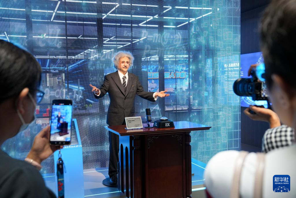在位于北京經(jīng)開區(qū)機(jī)器人大世界的全球首個(gè)具身智能機(jī)器人4S店(ROBOT MALL)內(nèi),觀眾在觀看一款人形機(jī)器人的互動(dòng)展示(8月6日攝)。