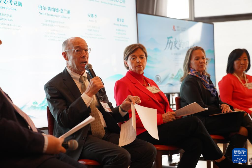 11月25日,在美國紐約舉行的2025鼓嶺論壇上,史迪威家族代表、史迪威將軍外孫特里·史蒂文·考克斯(左一)分享先人與中國人民共同抗戰(zhàn)的歷史。
